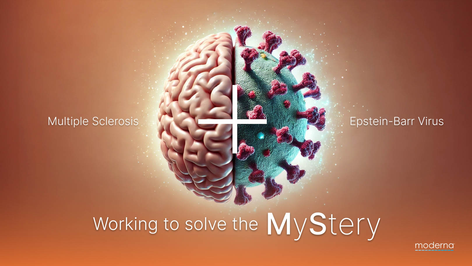 Bringing the connection between EBV and MS to the forefront. The split-brain design represents the intersection of neurology and virology, with the plus sign symbolizing breakthrough research. The tagline, "Working to solve the MyStery," reinforces the pursuit of answers while subtly emphasizing MS. This concept positions the clinical trial as a key step in exploring an EBV vaccine’s potential to impact MS progression.